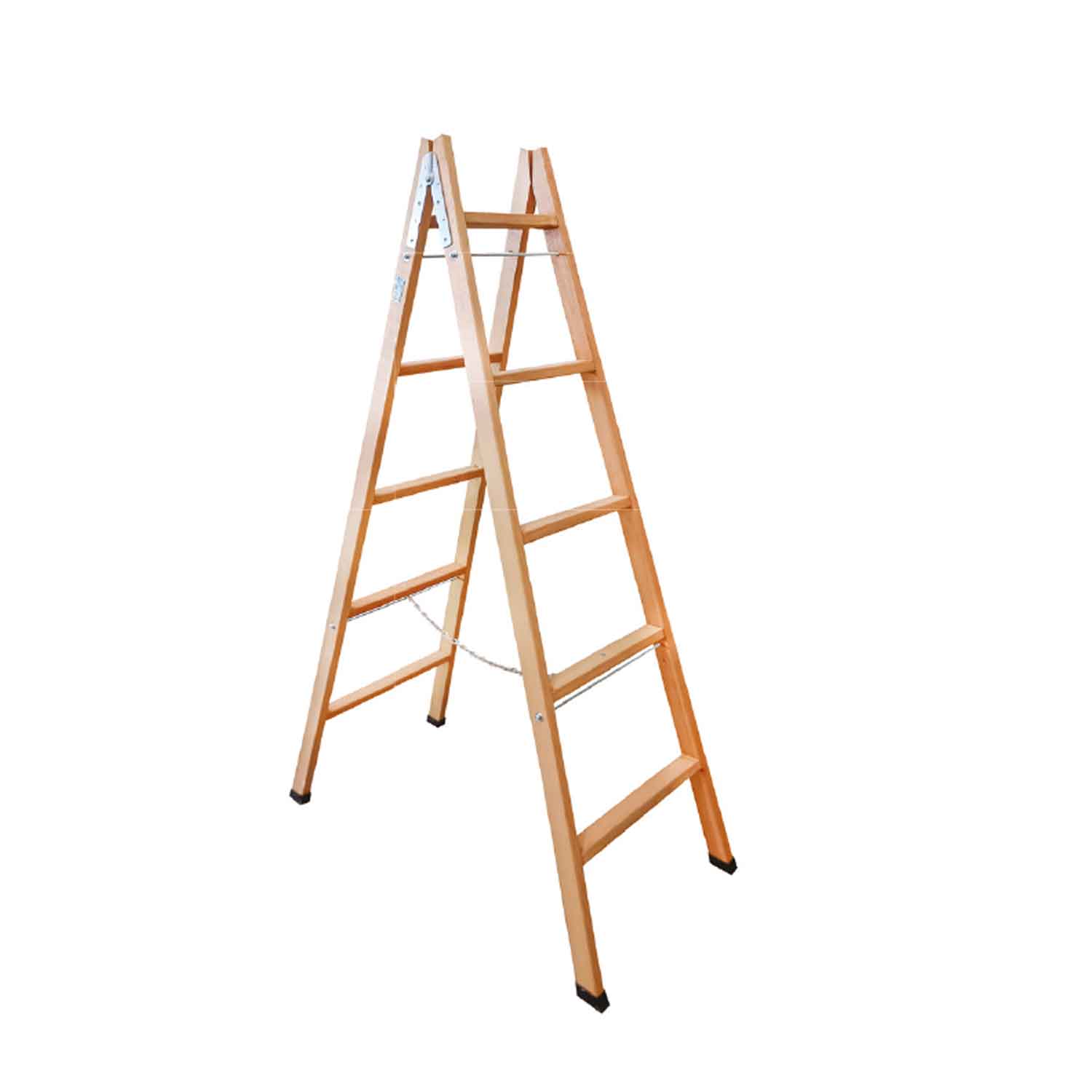 Ladin ağacından üretilmiş, dekoratif kullanıma uygun, kaymaz ayaklı ve zincir emniyetli ahşap merdiven modeli.