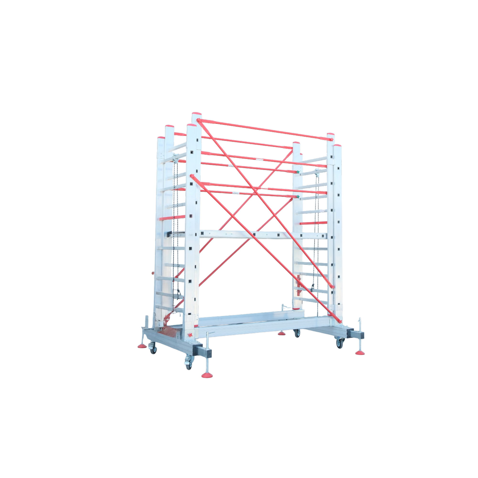 Yüksek kaliteli 90×25 alüminyum profilden üretilen, taşıma kolaylığı sağlayan, sağlam ve dayanıklı iskele sistemimiz, inşaat ve diğer endüstriyel alanlarda güvenli çalışma imkanı sunar. Bu özel tasarım, aşağı ve yukarı hareket edebilme özelliği ile işlerinizi daha hızlı ve verimli bir şekilde gerçekleştirmenizi sağlar.